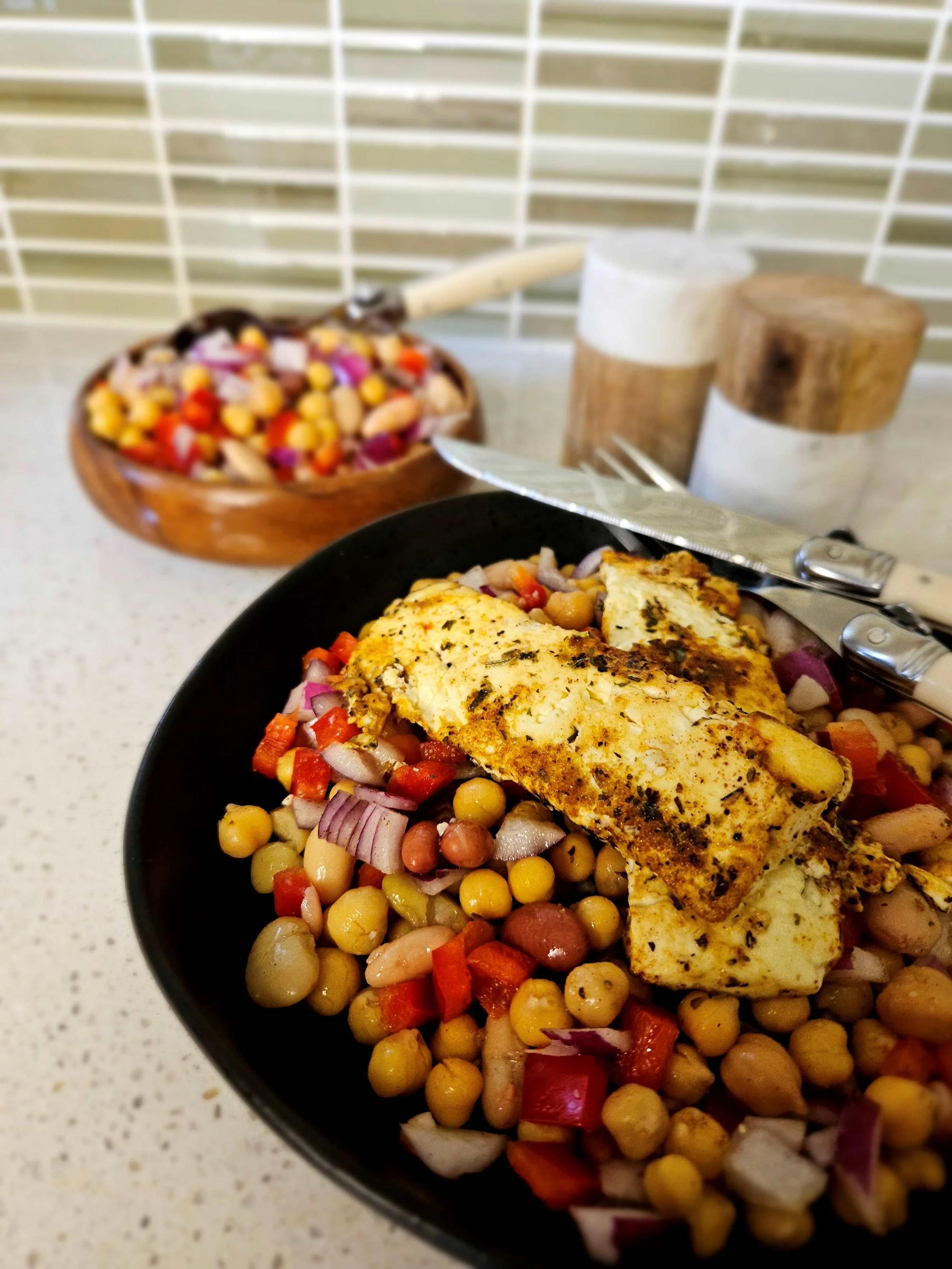 Delight in the golden goodness of pan-seared feta, perfectly seasoned and nestled atop a vibrant blend of beans, capsicum, and onions. With a preparation time of just 15 minutes, this salad is a quick, nutritious, and crowd-pleasing choice for your next family gathering.